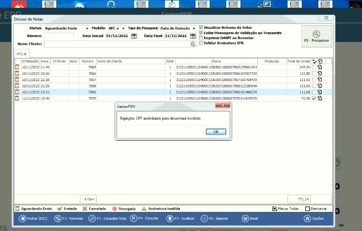 No PDV, ao "reenviar" cupom e ocorrer a rejeição CPF AUTORIZADO PARA DOWNLOAD INVÁLIDO, deve-se analisar se o CPF da contabilidade no Cadastro de Filial está correto.