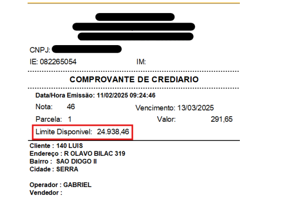 No relatório “sem produtos” do crediário foi adicionada a informação do limite disponível do cliente após a venda. Com essa melhoria, ao consultar o relatório, além dos dados já exibidos, passa a ser possível visualizar de forma imediata qual valor permanece disponível para novas compras no crediário do cliente, considerando a operação realizada. Essa atualização tem como objetivo oferecer mais clareza e controle sobre a utilização do limite, facilitando o acompanhamento tanto para a empresa quanto para o cliente, garantindo mais segurança e transparência no processo de concessão de crédito.