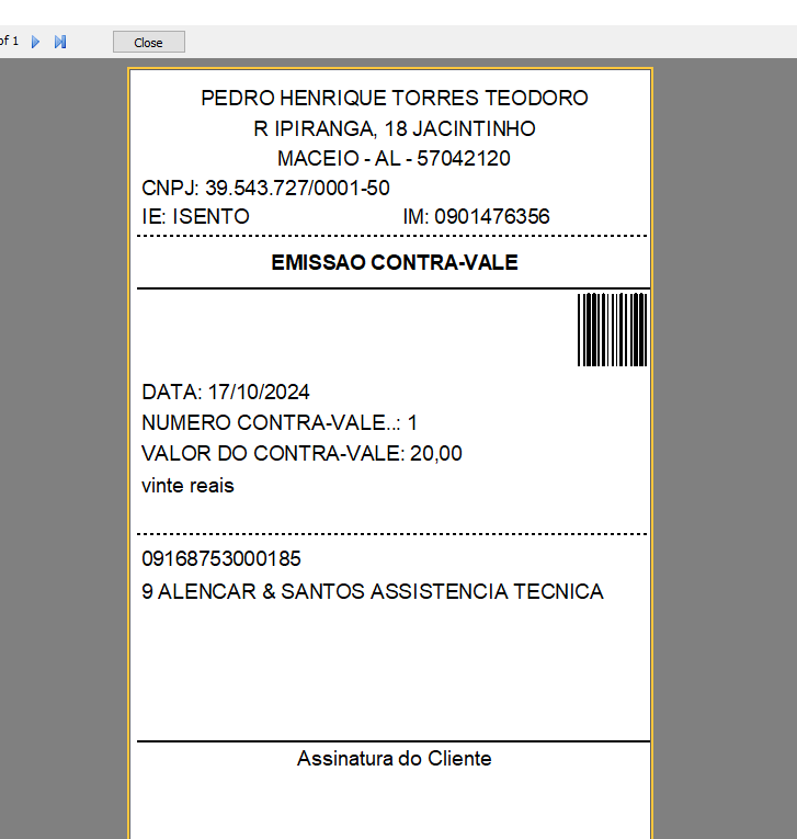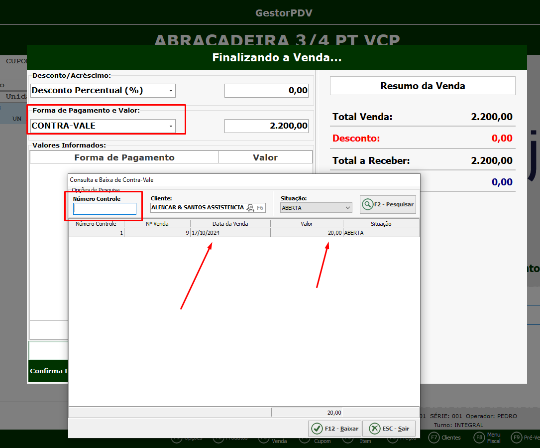 MODULO CONTRA VALE NO GESTOR-PDV