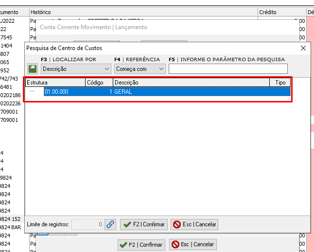 Esse centro de custo e configurado em Financeiro>> Cadastro de Centro de Custo.