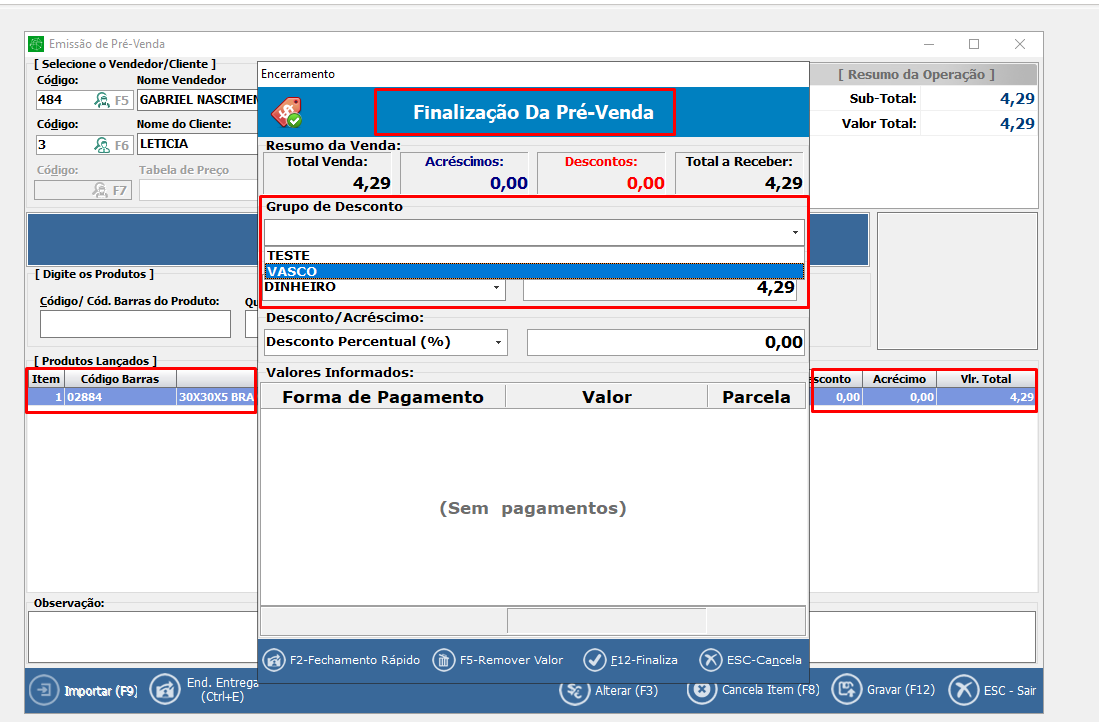 Foi criada a opção de limitar o desconto por forma de pagamento. Essa funcionalidade é ativada por um parâmetro localizado em Configurações >> Controle de Sistema >> Grupo de Desconto >> 'Usa Limite de Desconto por Forma de Pagamento na Pré-Venda e DAV.