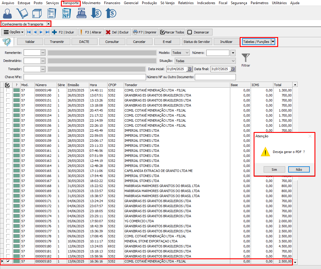 Através dessa funcionalidade, é possível selecionar e enviar múltiplos CT-es para um mesmo endereço de e-mail.