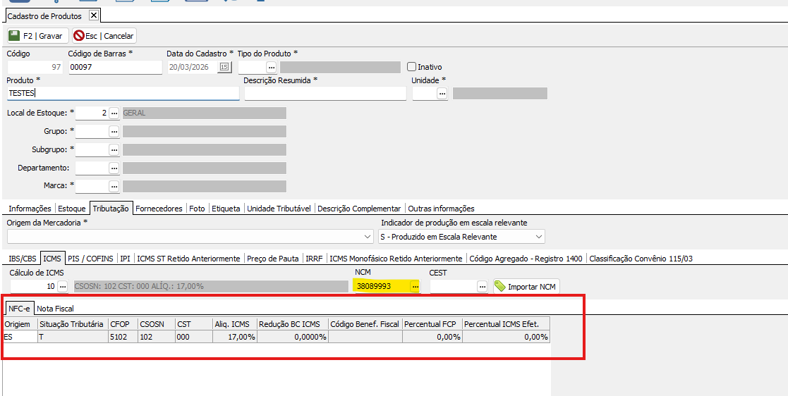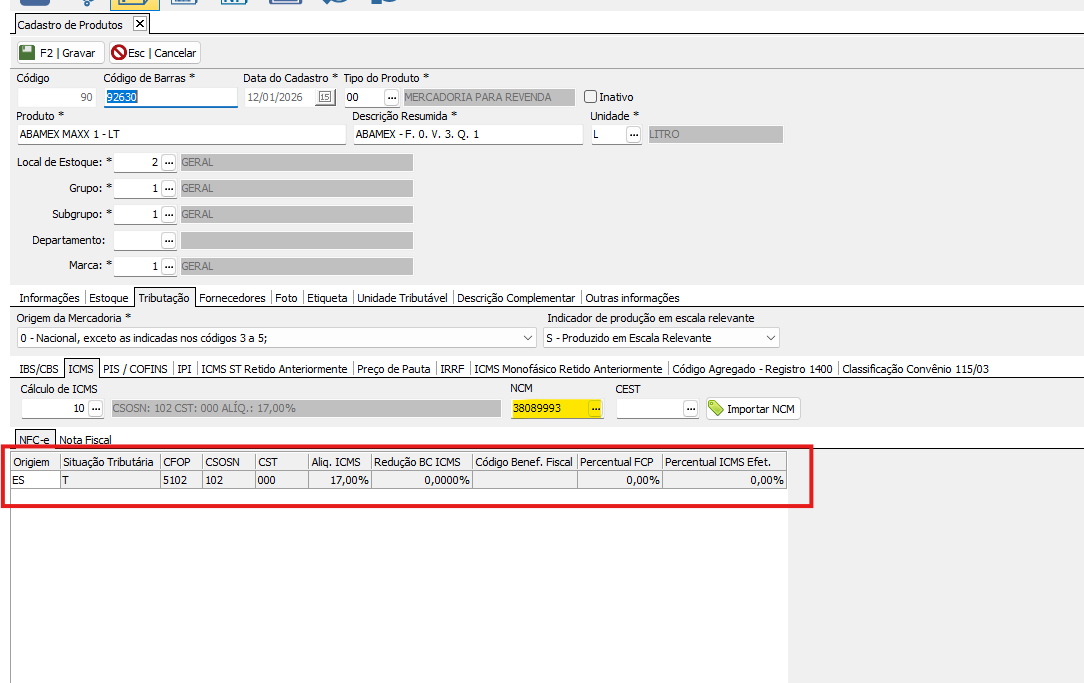 Agora o sistema está buscando a tributação Completa (ICMS/PIS/COFINS/IBS/CBS) de um produto com o mesmo NCM quando é feito o cadastro de um novo produto