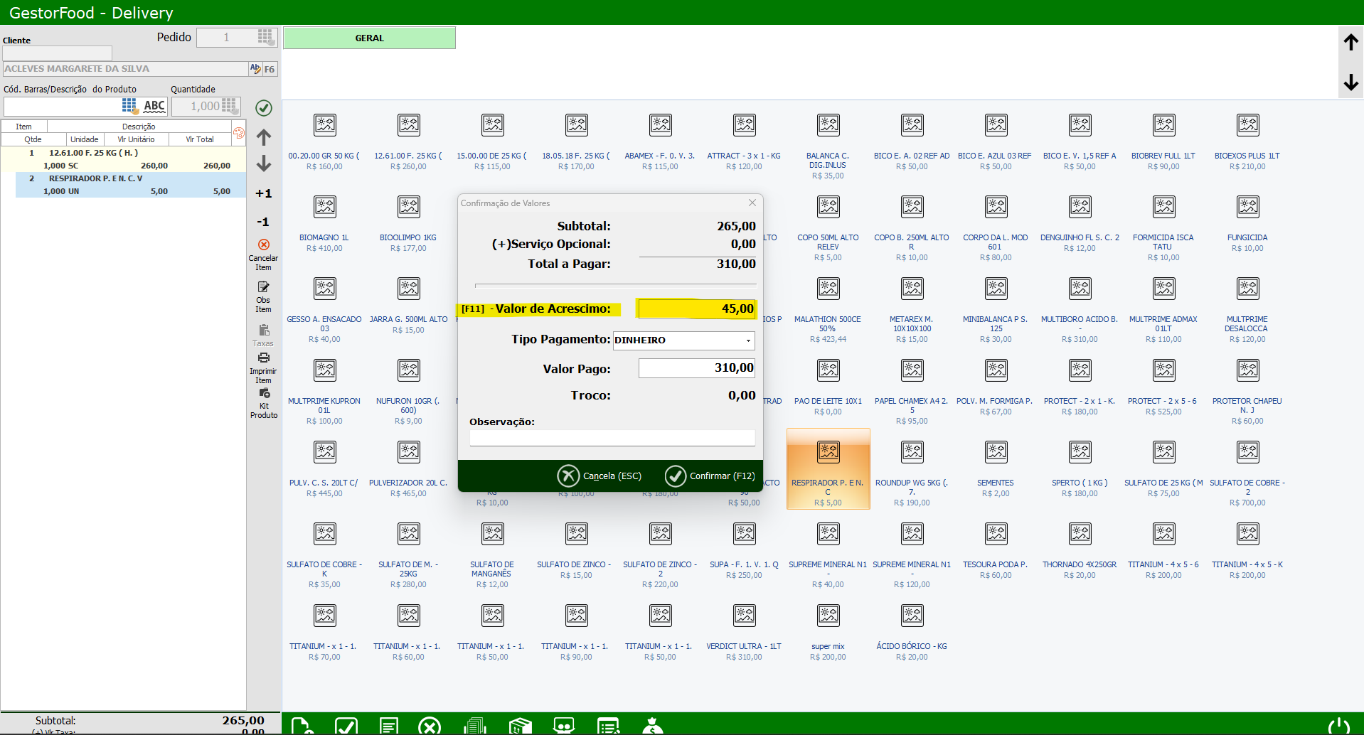 Foi adicionado na tela de confirmação do delivery a opção de alterar “F11” Desconto/Acréscimo, antes só existia o desconto. Agora é possível colocar acréscimo no pedido na hora da confirmação.