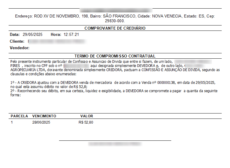 Ao habilitar o parâmetro abaixo o sistema vai exibir o comprovante de crediário na impressão, após a DANFE: