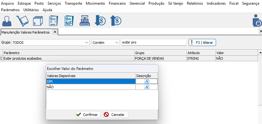 Foi criado o parâmetro no gestores PARÂMETRO VALOR > "EXIBIR PRODUTOS