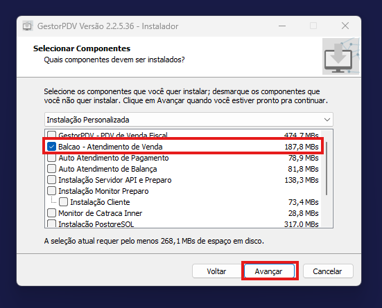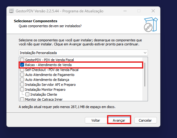 Após clicar em avançar algumas vezes vai aparecer essa tela, você vai deixar o balcão selecionado, e continue clicando em avançar.