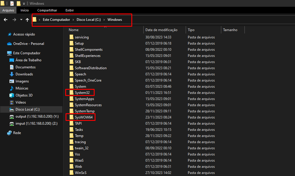 4.2: Após dentro da pasta Windows, faz-se necessário colar as Dlls dentro das pastas System32 e SysWOW64.