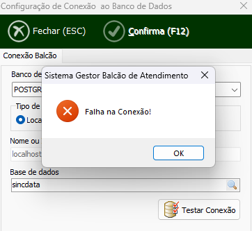 Falha ao tentar conectar o balcão.