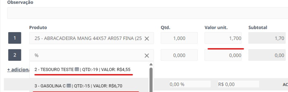 Na consulta de produto ao fazer um orçamento foi criado um campo para o visualizar o preço do produto.