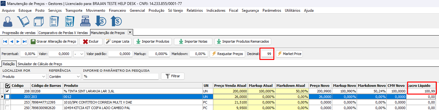 RELEASE V26: 'CAMPO DECIMAL ADICIONADO NA MANUTENÇÃO DE PREÇO'