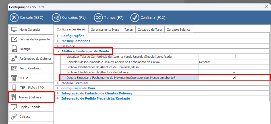 Quando este parâmetro estiver ativado (marcado), o cliente não conseguirá encerrar o movimento com mesas em aberto. Isso é útil para evitar a mudança de turno de um funcionário para outro sem fechar o caixa.
