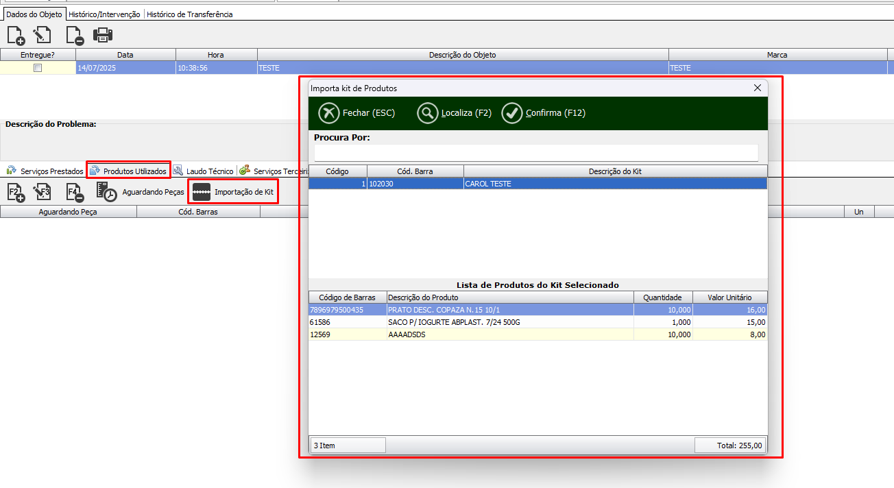 Foi incluido uma nova alteração e agora é possível importar Kits para os lançamentos de produtos nas Ordens de Serviço.