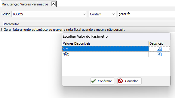 Para que serve o parâmetro Gerar faturamento automático ao gravar nota fiscal quando a mesma não possuir?