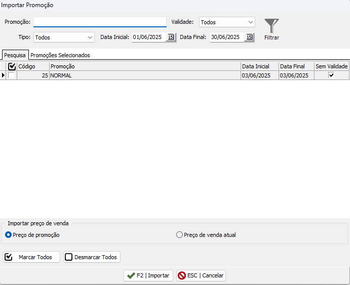 Localização: Etiqueta > Opções > Importa Promoções