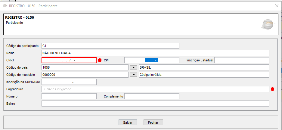 Perante a um Sped em análise percebemos que foi nos retornado o erro do registro 0150 com nome como Não identificado.