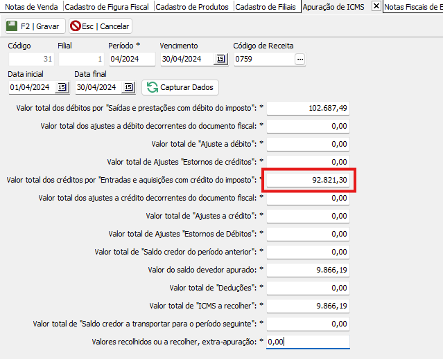 PARA CORRIGIR A SITUAÇÃO, FAZ-SE NECESSÁRIO CAPTURAR OS DADOS APÓS CORRIGIR TODOS OS ERROS ANTERIORES A ESSE, DE MODO QUE OS VALORES GERADOS SEJAM OS CORRETOS: