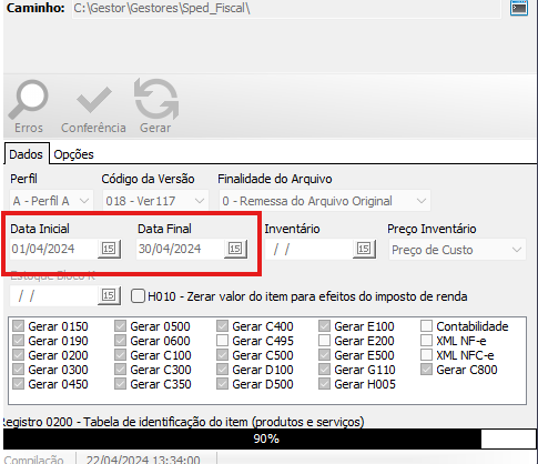OBS: DEVE SER GERADO O SPED COM DATA DO INÍCIO AO FIM DO MÊS: