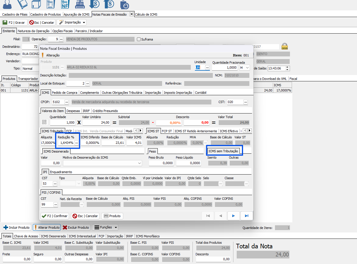 PREENCHA A REDUÇÃO DE MODO QUE GERE AS TRIBUTAÇÕES, OU O PASSO ABAIXO: