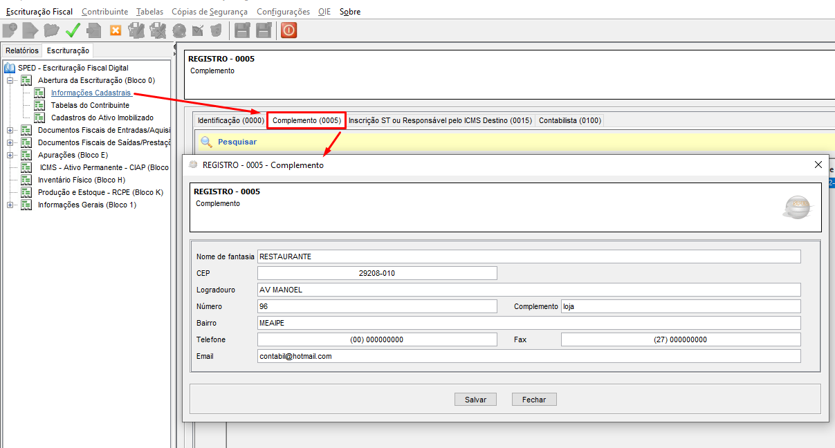 REGISTRO 0005: DADOS COMPLEMENTARES DA ENTIDADE