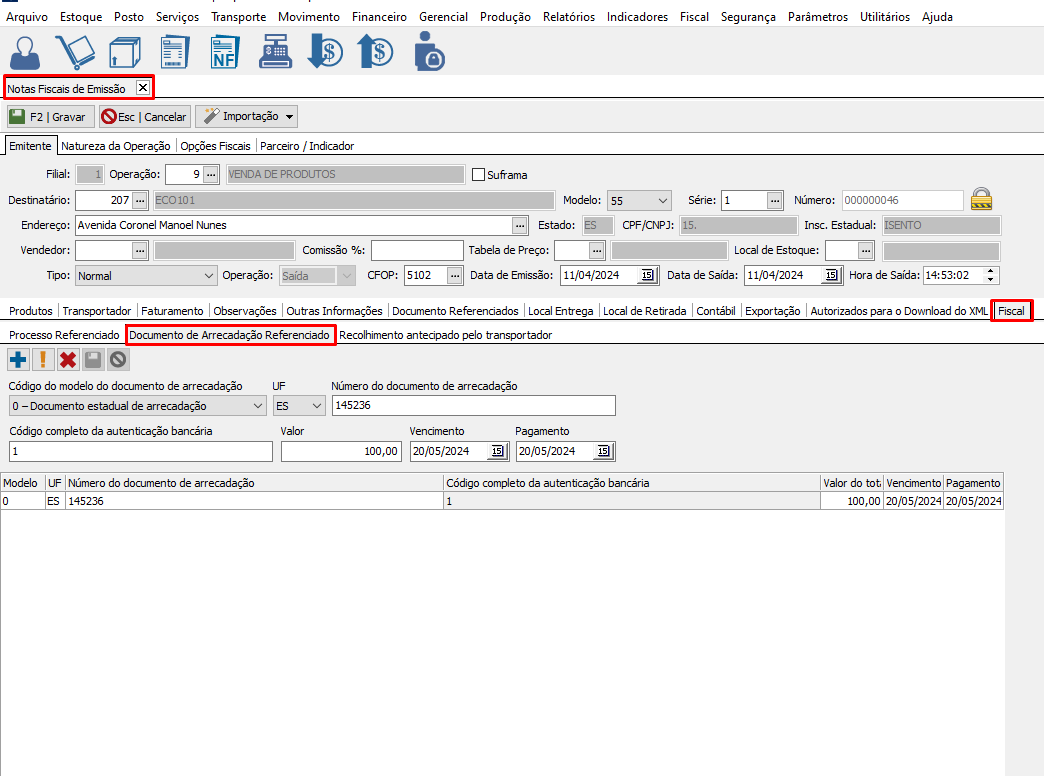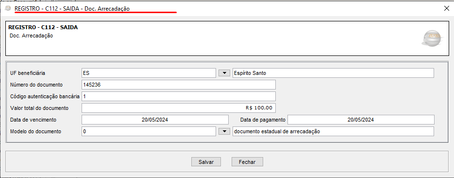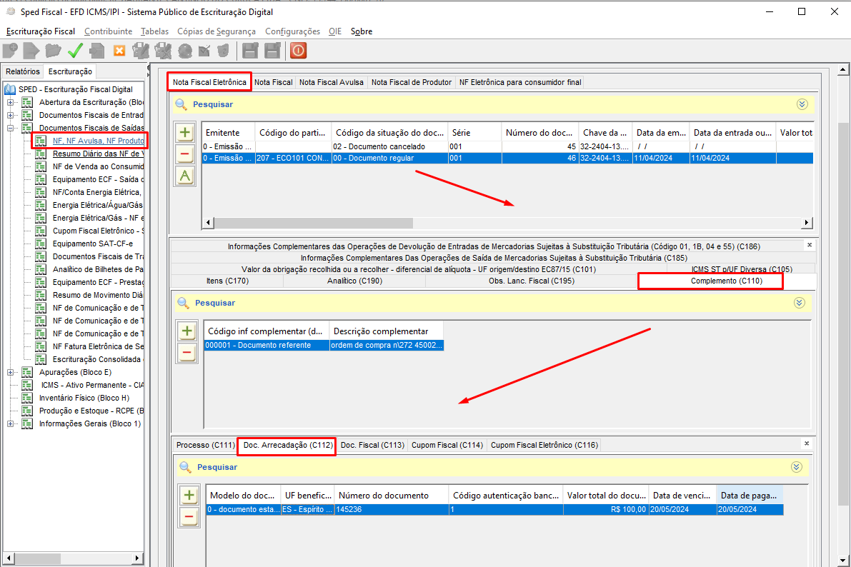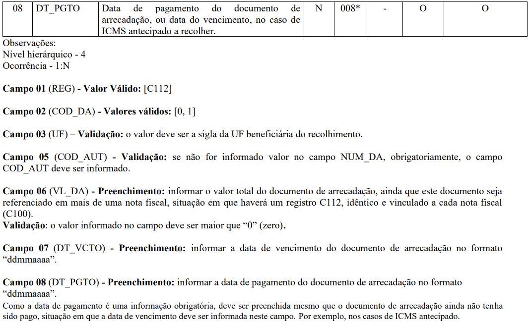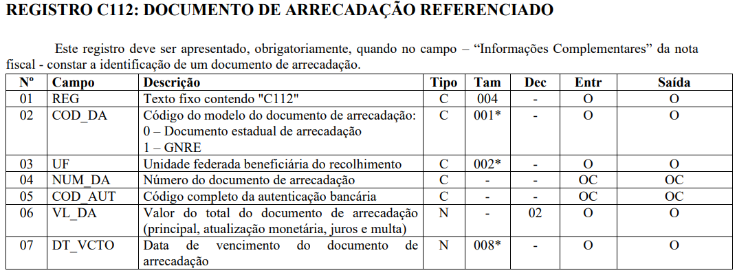Este registro deve ser apresentado, obrigatoriamente, quando no campo – “Informações Complementares” da nota fiscal - constar a identificação de um documento de arrecadação