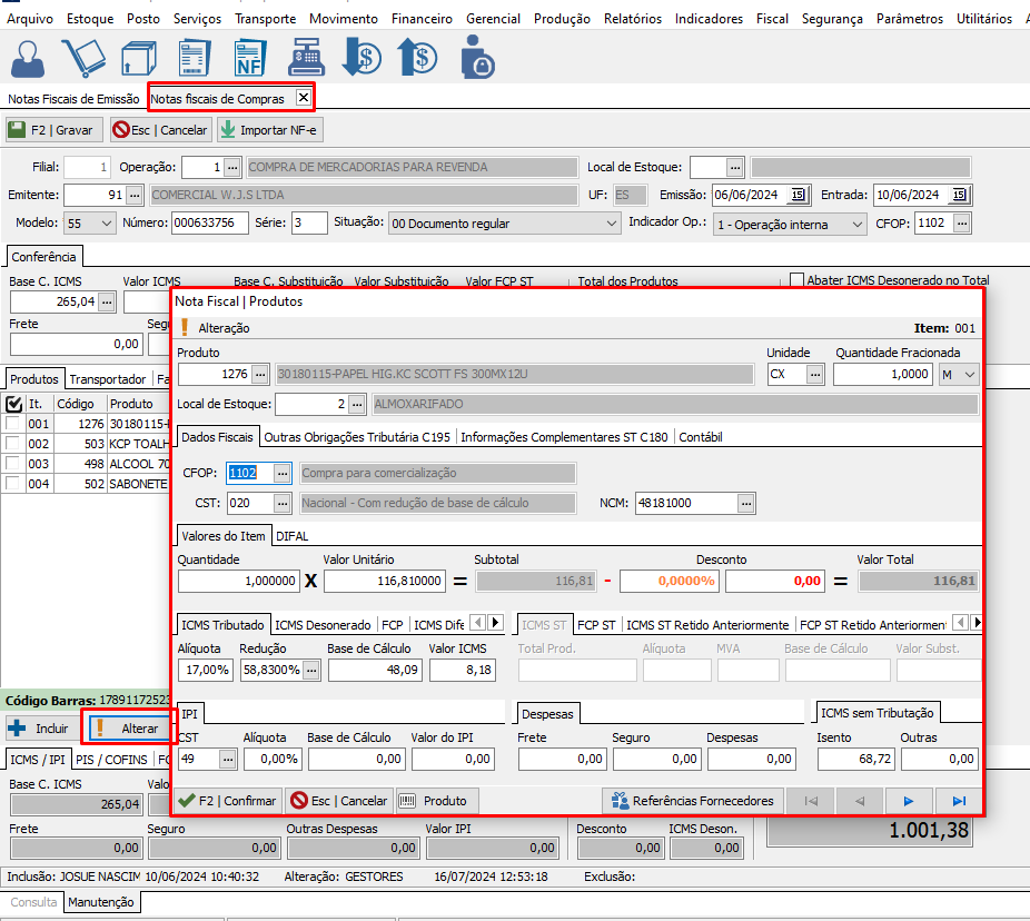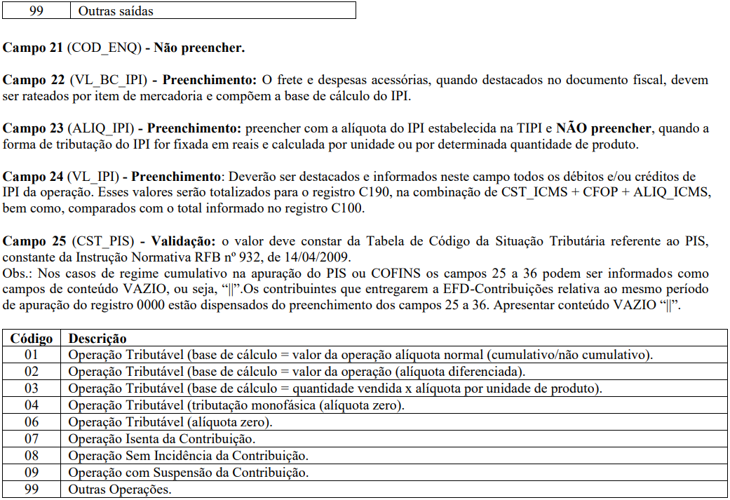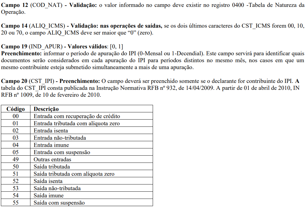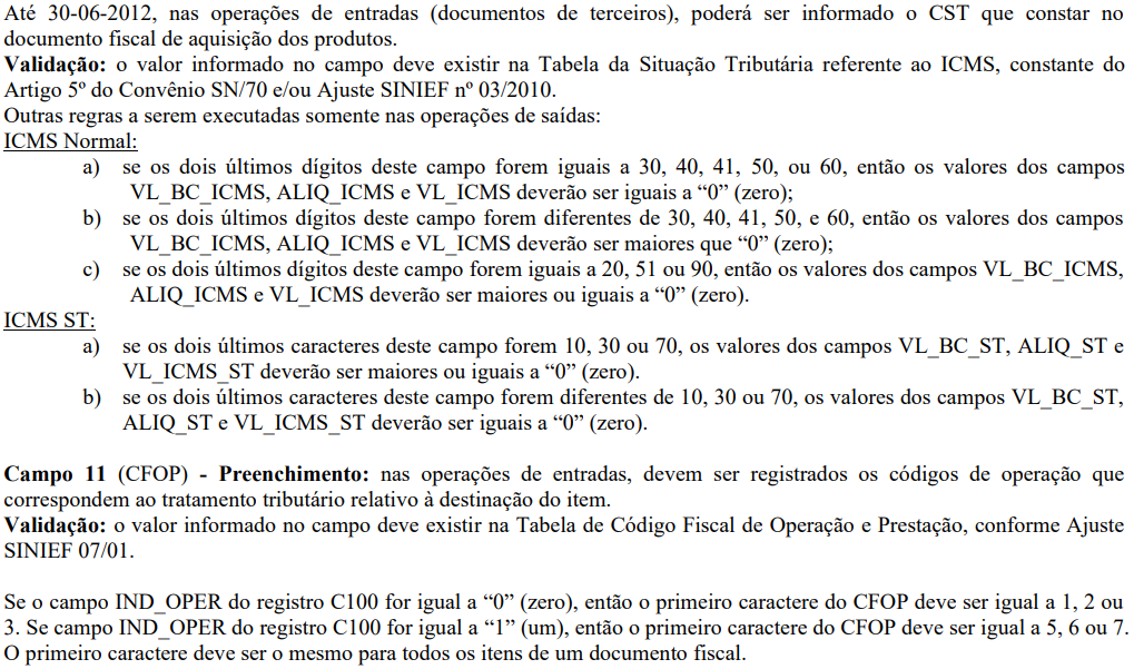 SPED FISCAL: Registro C170 - Complemento de Documento - Itens do Documento (código 01, 1B, 04 e 55)