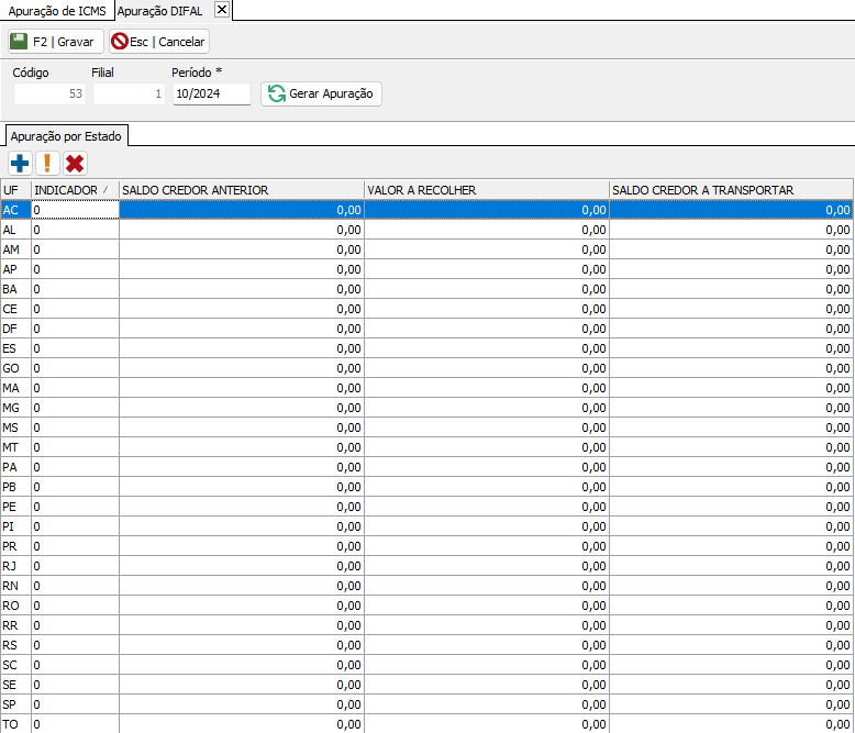 CAMINHO: FISCAL > APURAÇÃO DE ICMS DIFAL > APURAÇÃO DO ICMS DIFERENCIAL DE ALÍQUOTA.