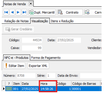 Foi adicionada nas notas de vendas a informação da hora em que a venda foi realizada.
