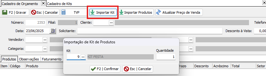 Nova Funcionalidade: Importação de Kits na Tela de Lançamento de Orçamento
