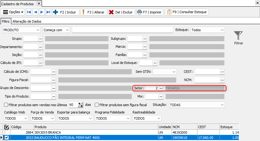 Essa melhoria permite realizar a manutenção dos produtos com base no setor correspondente, proporcionando maior agilidade e precisão na filtragem e edição dos itens conforme sua categorização por setor.