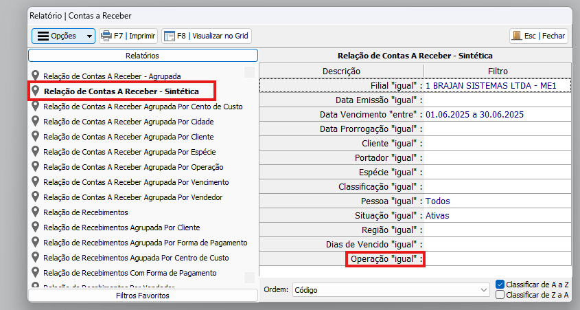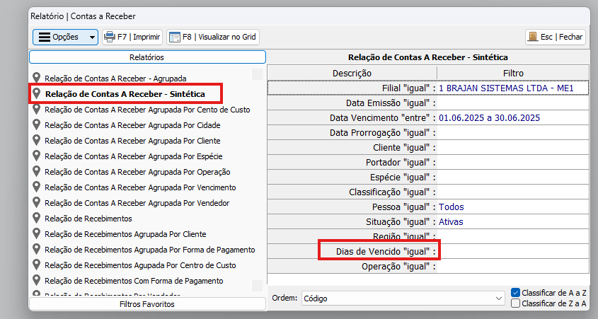 Novos Filtros no Relatório Sintético de Contas a Receber