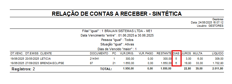 Agora é possível filtrar os títulos com base na quantidade de dias em atraso, facilitando a identificação de contas vencidas em diferentes faixas de tempo.