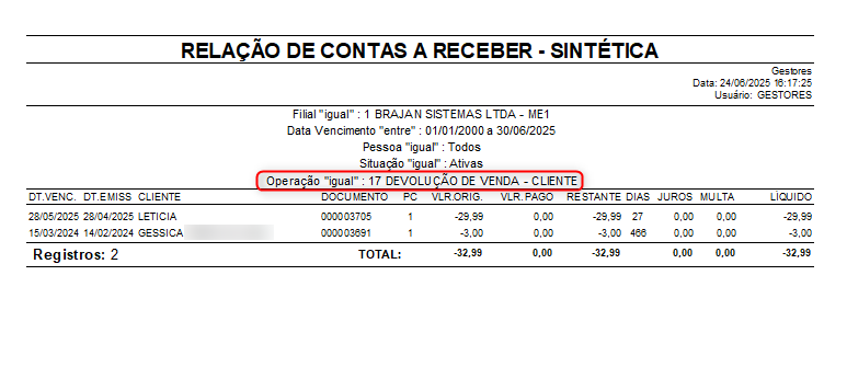 Com este novo filtro, é possível segmentar os dados por tipo de operação, proporcionando uma visão mais detalhada e estratégica das contas a receber.