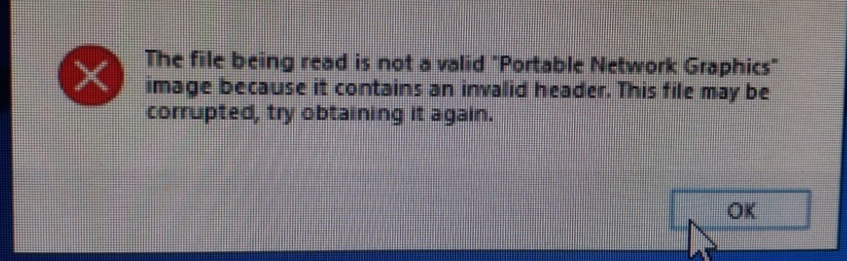 ERRO : The file being read is not a valid "Portable Network Graphics" image because it contains an invalid header. This file may be corrupted, try obtaining it again.