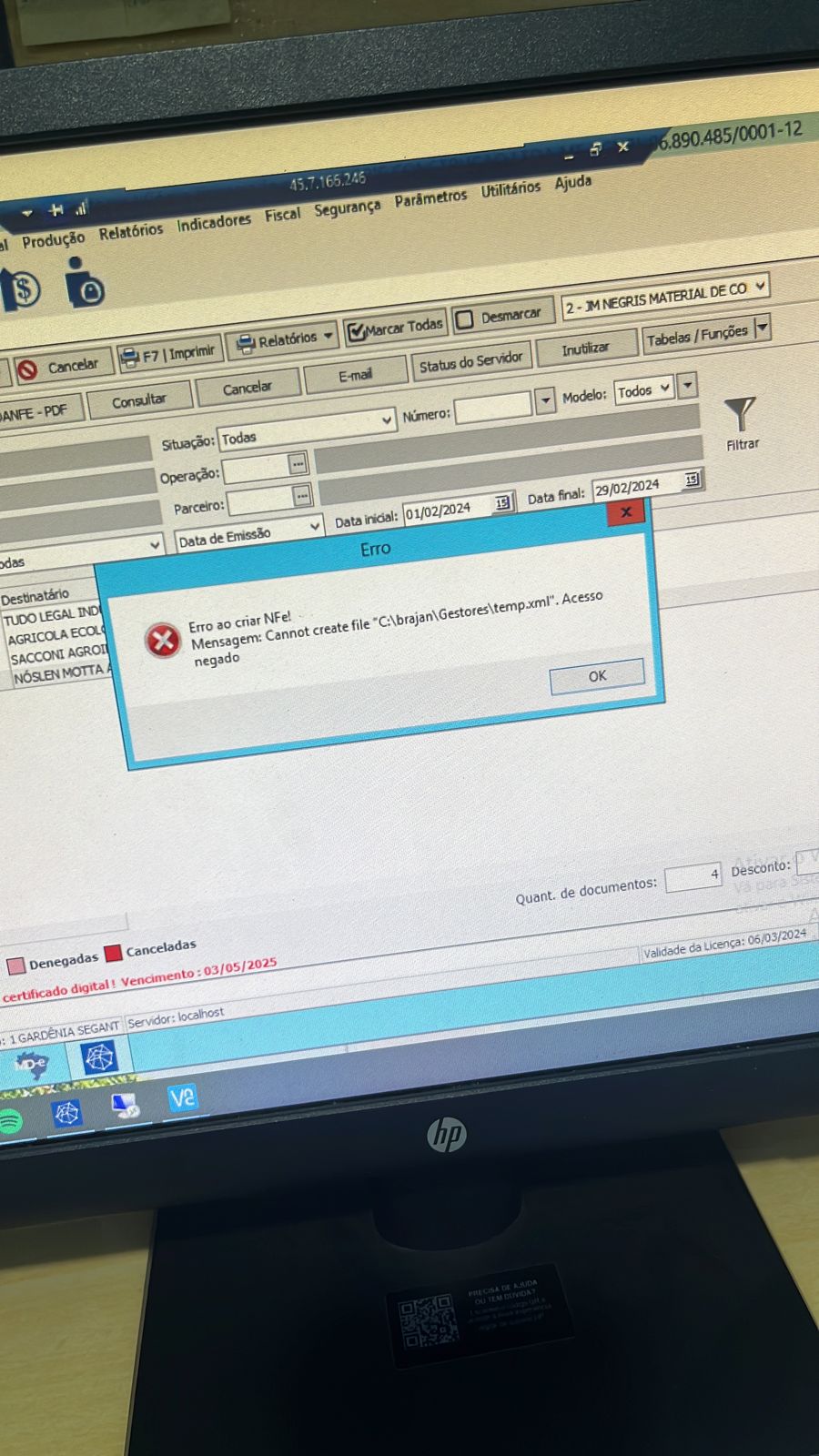 Caso vier a acontecer esse erro, é só dar as permissões no Disco Local C:.
