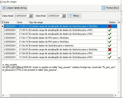 Para corrigir este erro é preciso dar uma Carga Geral para as informações do Retaguarda ir para o Sincdata ou uma Carga Modular.