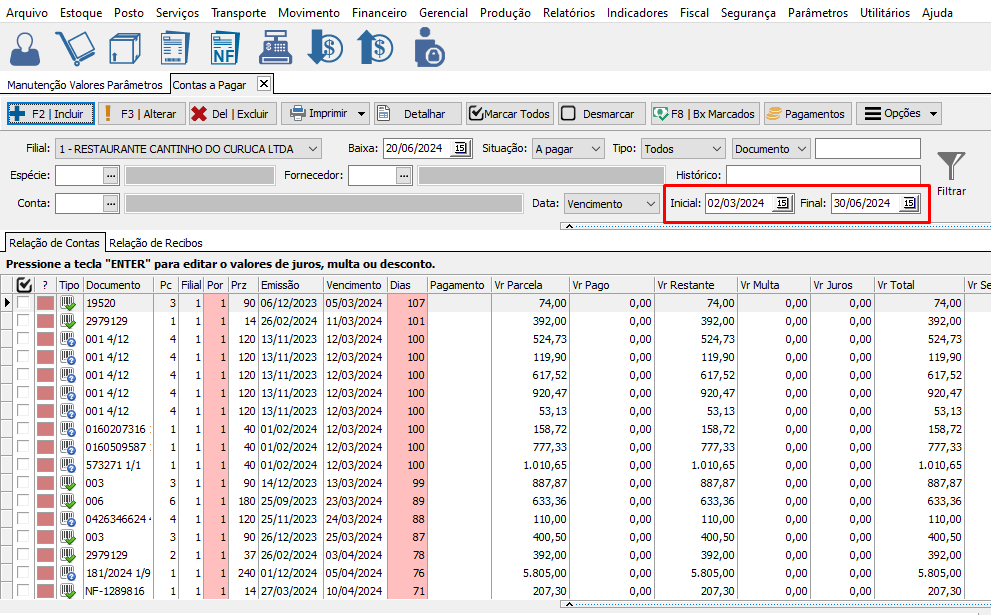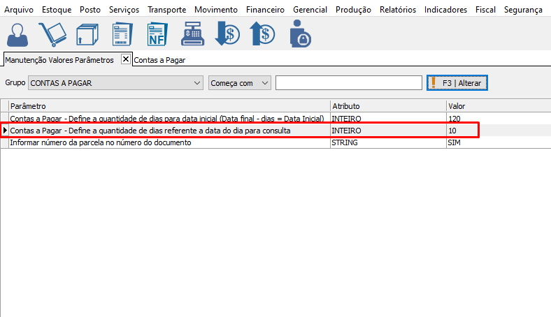 Define a quantidade de dias para frente que o filtro vai buscar. No caso vai buscar as parcelas a pagar que ainda irão vencer.
