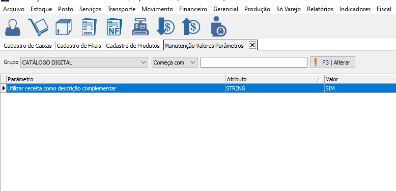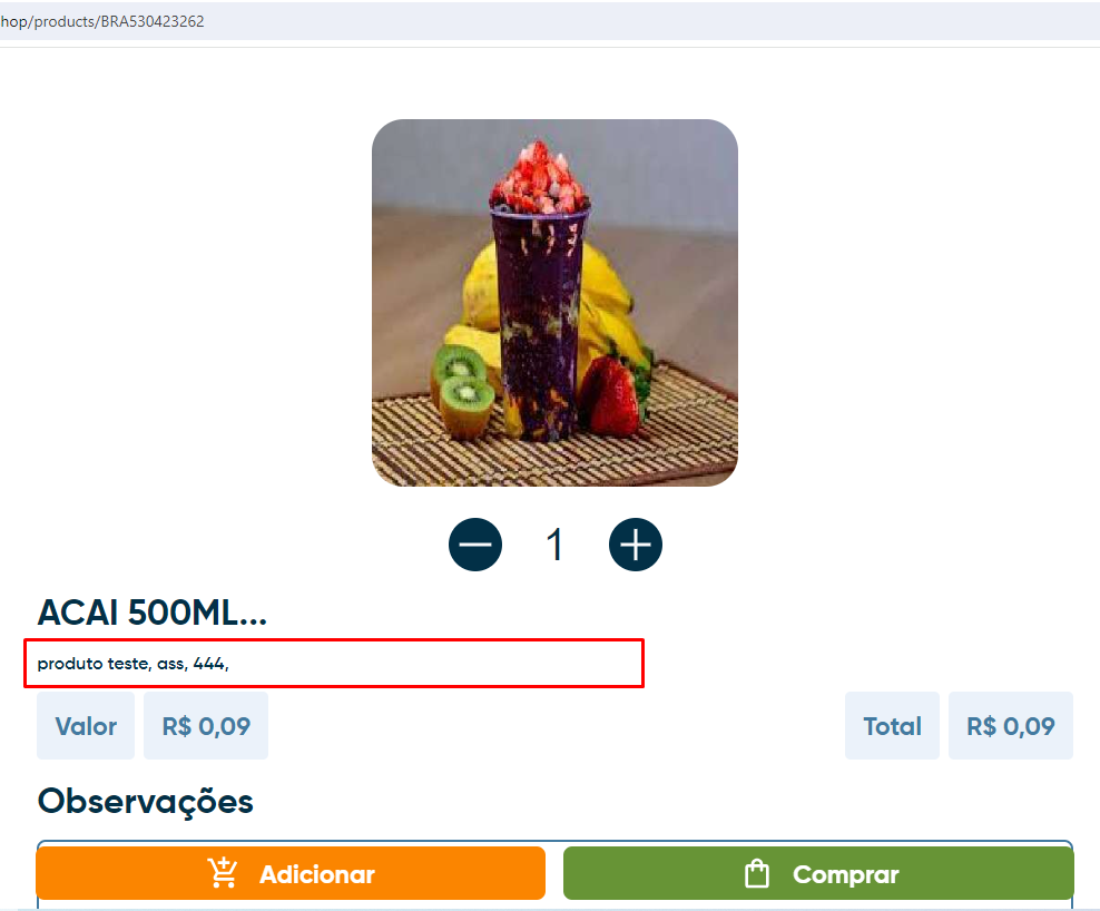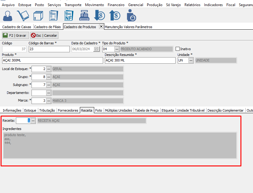 Vai enviar a receita incluída no cadastro de produto para o catálogo web.