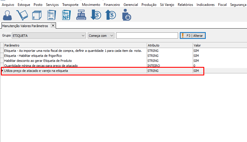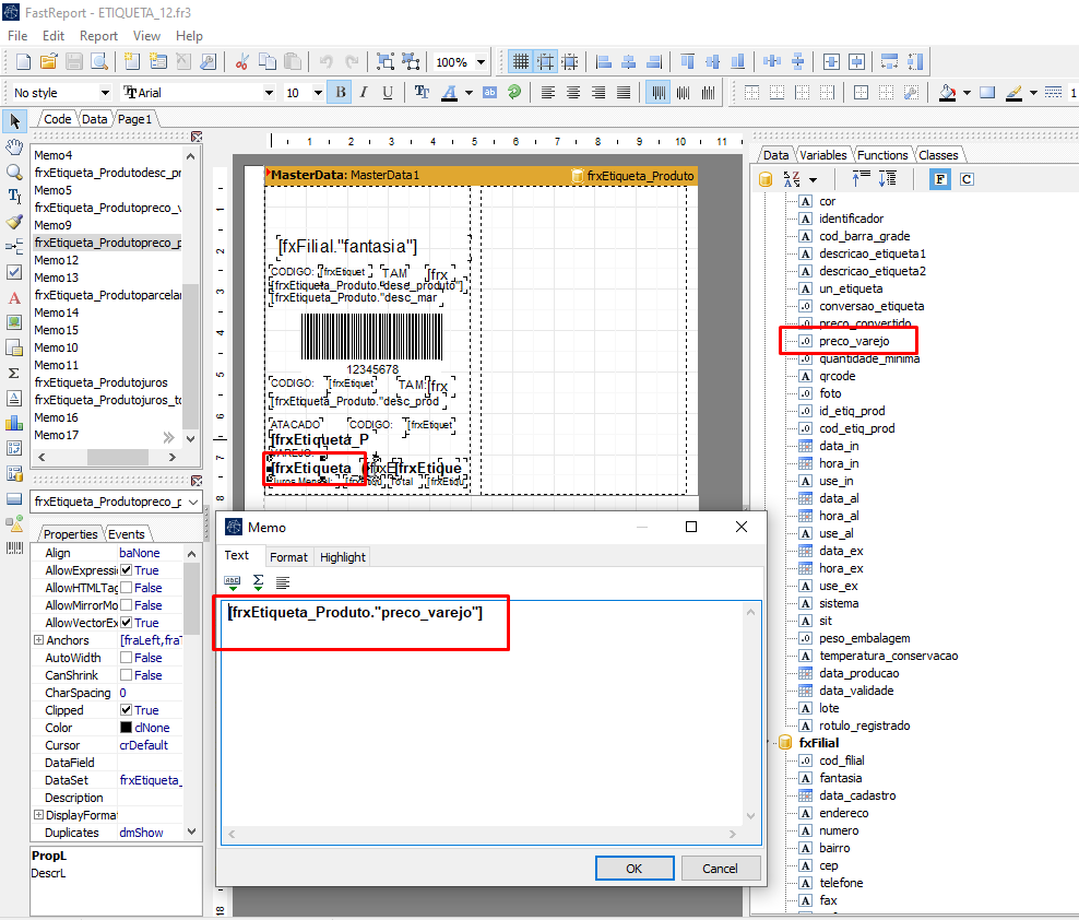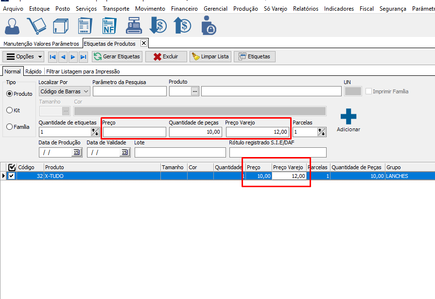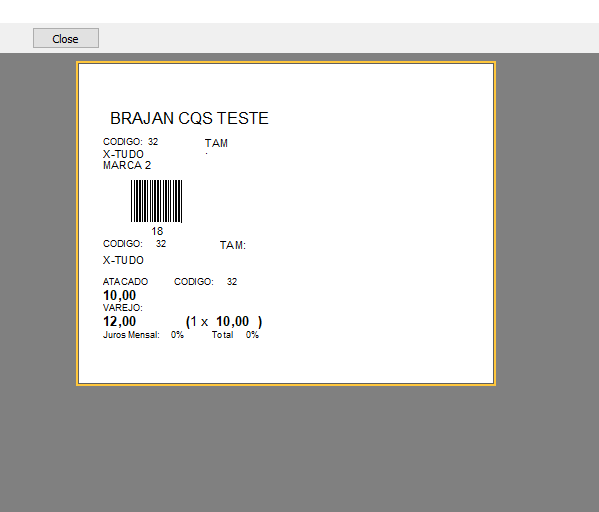 Lembrando que é necessário configurar a etiqueta para esse relatório funcionar corretamente.
