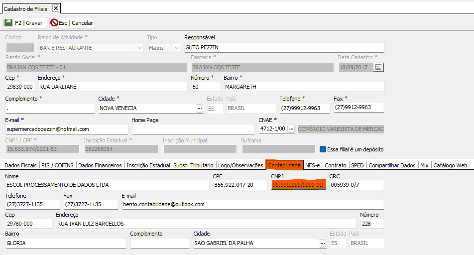 Quando ocorre essa mensagem de rejeição ao enviar a NFC-e no PDV é pelo motivo que não foi cadastrado de forma correta o CNPJ da Contabilidade no Cadastro de Filiais.