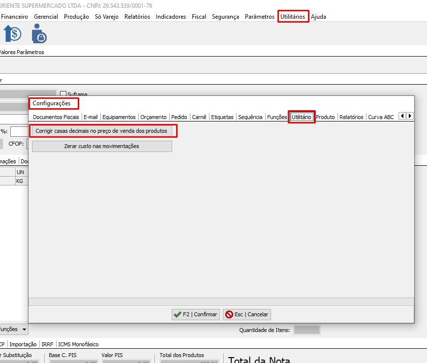 Configurações -> utilitário -> corrigir casas decimais no preço de venda dos produtos.
