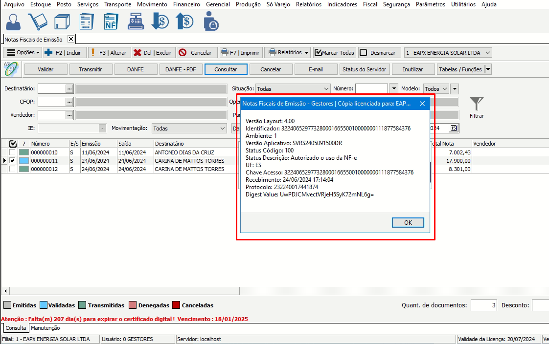Todos os dados deverão estar igual da SEFAZ: endereço, produtos, nome do destinatário, (transportadora se houver), etc.