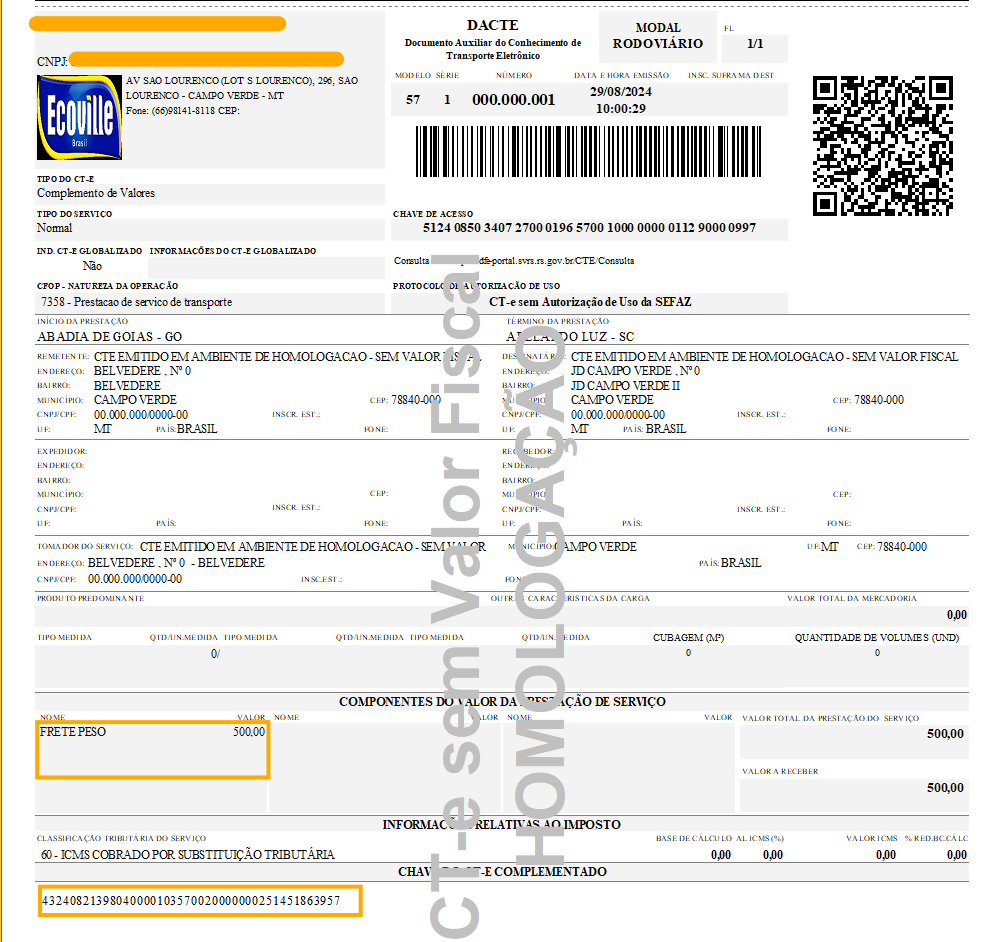 Emitiu-se um CTe errado no valor de frete de R$1.500,00, porém, o correto seria o CTe no valor de R$2.000,00. Iremos utilizar a opção de CTe complementar para informar a diferença que faltou, nesse caso, os R$500,00 reais. Com isso, o cliente vai possuir 2 CTes para o mesmo cliente tomador, um será o CTe no valor de R$1.500,00 e o outro CTe será no valor de R$500,00, totalizando o valor que deve receber de R$2.000,00 do tomador.