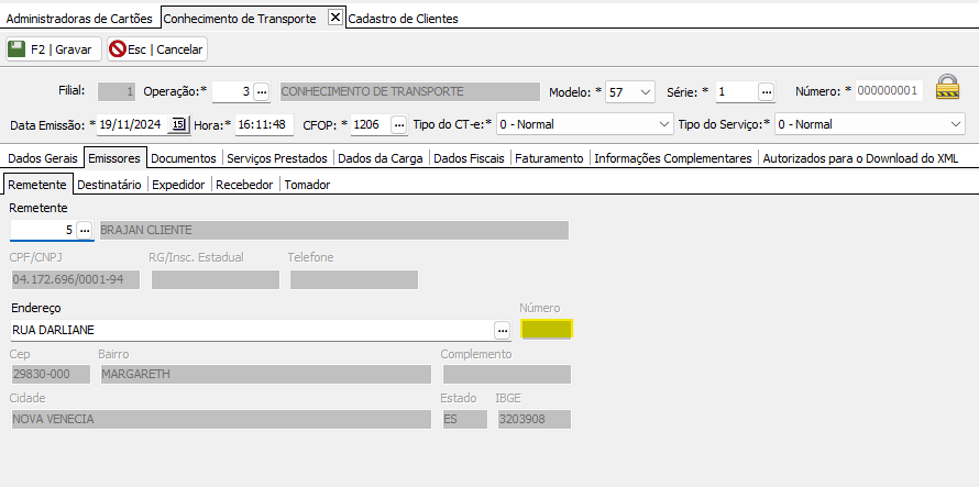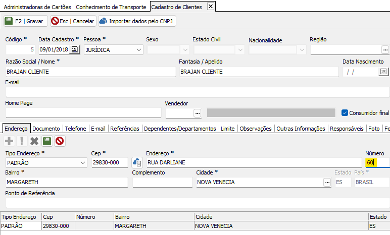 Após, deve ser preenchido o campo dentro cadastro de pessoas (clientes/transportadoras/fornecedor):