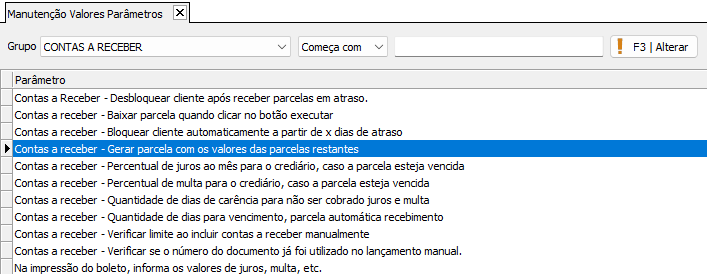 Para conseguir aplicar desconto nas parcelas do Contas a receber, necessita ativar o seguinte parâmetro:
