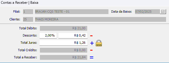 Para conseguir aplicar Juros, necessita ativar permissão abaixo: