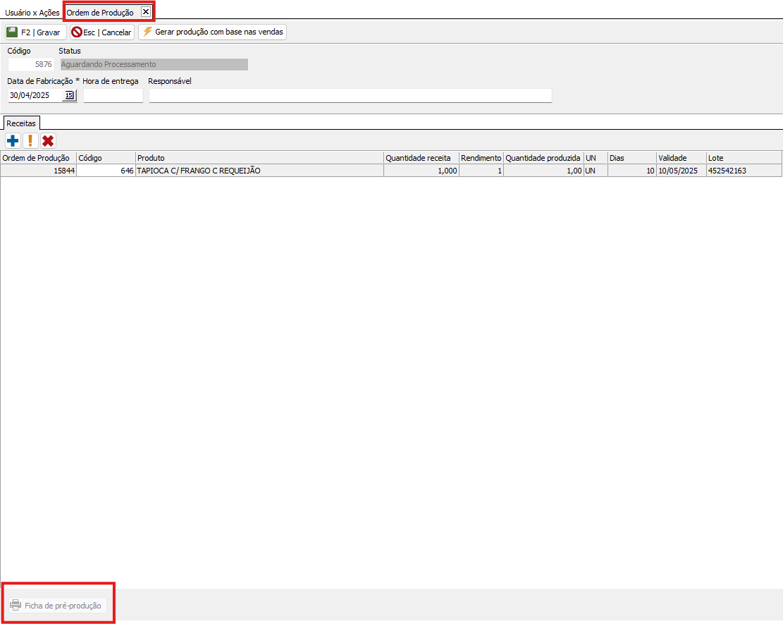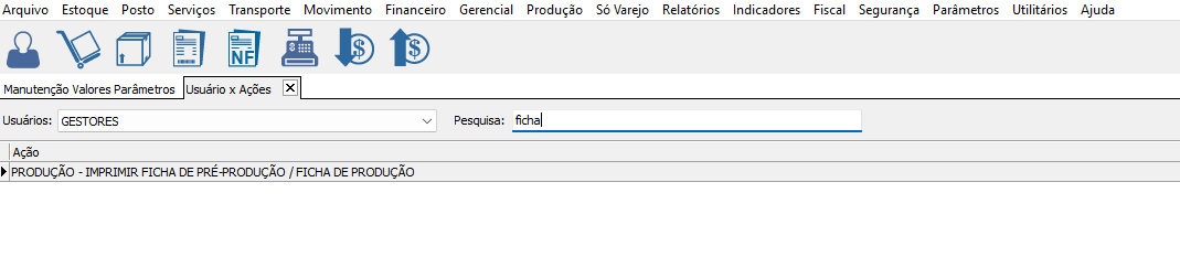Em Segurança > Usuários > Usuários x Ações: