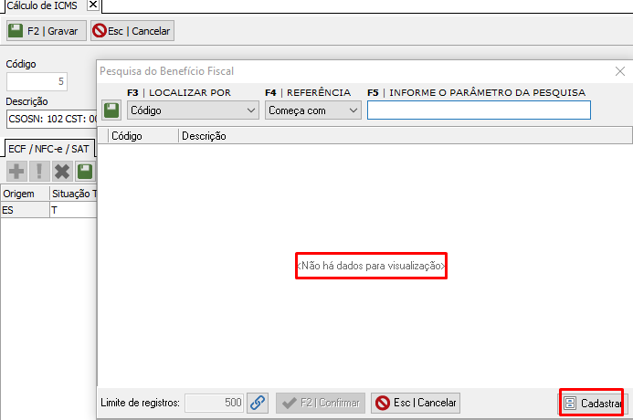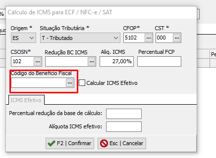 Para selecionar o código do Benefício Fiscal, é necessário configurar como o passo 2.