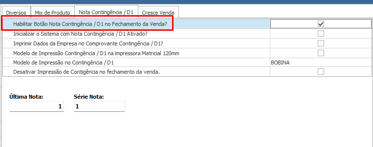 Ativa o botão que permite emitir nota em modo contingência no momento de finalizar a venda.