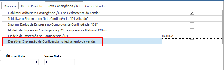 PARÂMETRO: DESATIVAR IMPRESSÃO DE CONTINGÊNCIA NO FECHAMENTO DA VENDA.